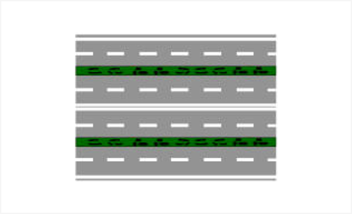 Rruga e paraqitur në figurë ka karrexhatat anësore, që si rregull janë me një sens lëvizje.