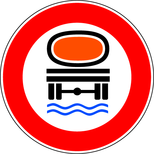 Sinjali në figurë ndalon qarkullimin e mjeteve që transportojnë lëndë, të cilat mund të ndotin ujin.