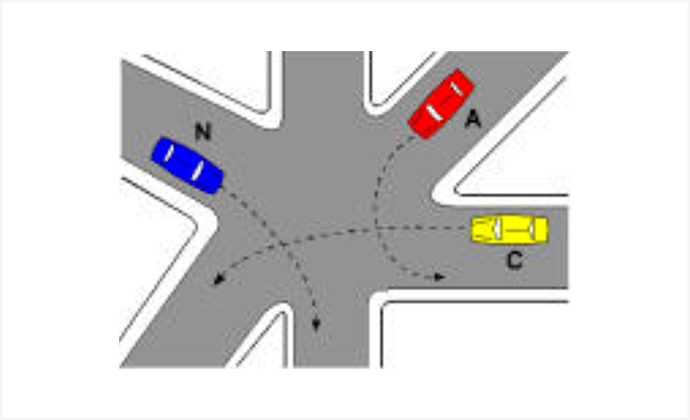 Në kryqëzimin e paraqitur në figurë, mjetet kalojnë sipas radhës: A, C, N.