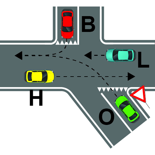 Në kryqëzimin e paraqitur në figurë, mjeti B kalon i pari.