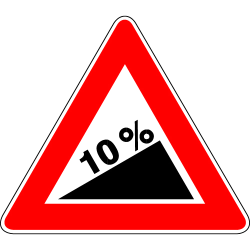 Sinjali në figurë paralajmëron një ngjitje të rrezikshme me pjerrësi prej 10%.