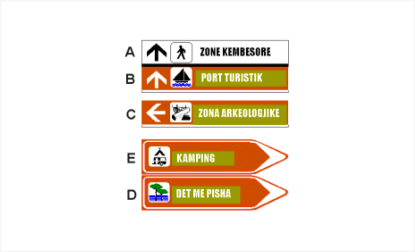 Sinjali në figurë tregon zona këmbësore apo turistike, sipas drejtimit që tregohet nëpërmjet shigjetave.