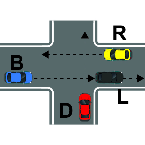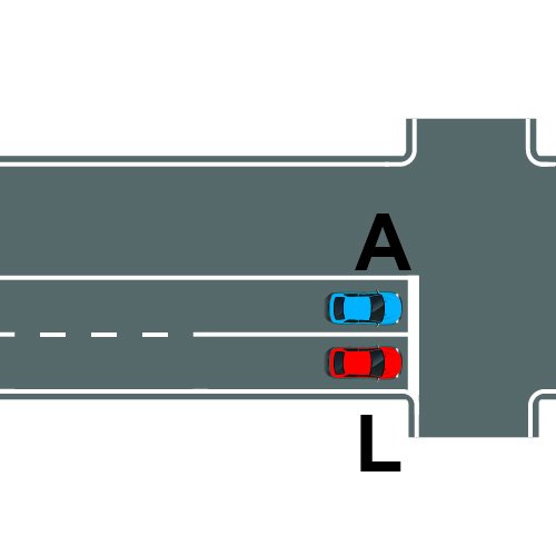 Sipas sinjalistikës në figurë, mjeti L mund të kthehet djathtas ose të kalojë drejt kryqëzimin.