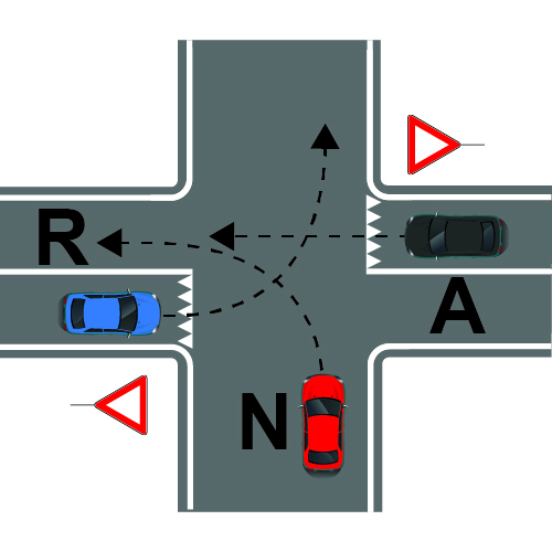 Në kryqëzimin e paraqitur në figurë, radha e kalimit të mjeteve është: N, A, R.