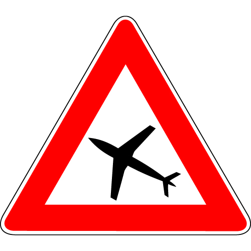 Sinjali në figurë paralajmëron zhurmë ose dritë të fortë, që shkaktohet nga ulja apo ngritja e avionëve.