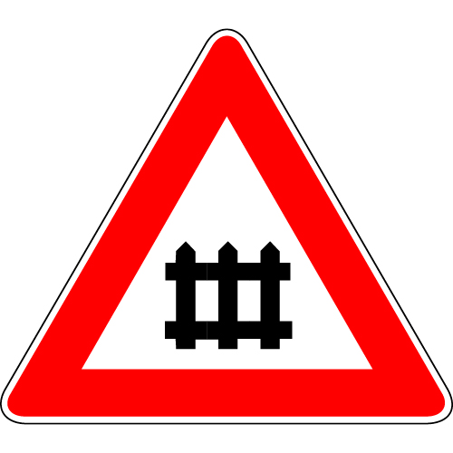 Sinjali në figurë paralajmëron ndërprerjen e rrugës me një linjë hekurudhore.