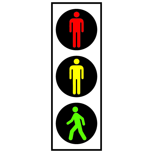 Semafori në figurë, me fenerin jeshil të ndezur, lejon kalimin e këmbësorëve.