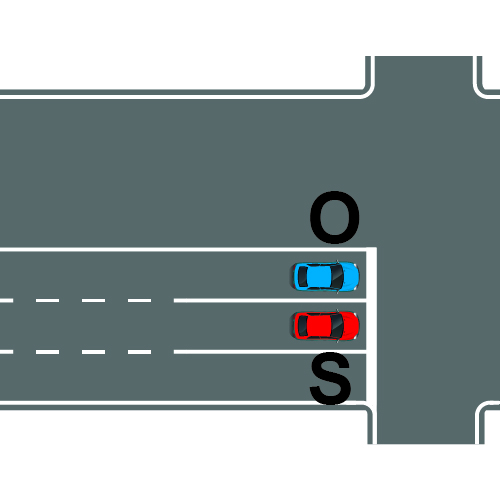 Sipas sinjalistikës në figurë, mjeti O për t'u kthyer majtas duhet të ketë ndezur sinjalin, para se t'i afrohet kryqëzimit.