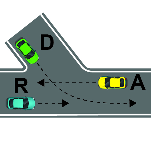 Në kryqëzimin e paraqitur në figurë, mjeti D duhet të kalojë para mjetit R.