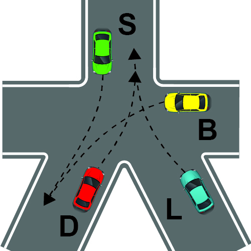 Në kryqëzimin e paraqitur në figurë, duhet të zbatohet rregulli i dhënies së përparësisë nga e djathta.