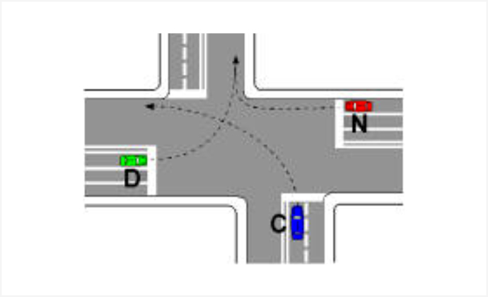 Në kryqëzimin e paraqitur në figurë, mjeti C i jep përparësi mjetit D.