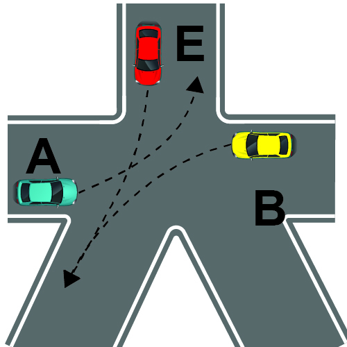 Në kryqëzimin e paraqitur në figurë, radha e kalimit është: A, B, E.