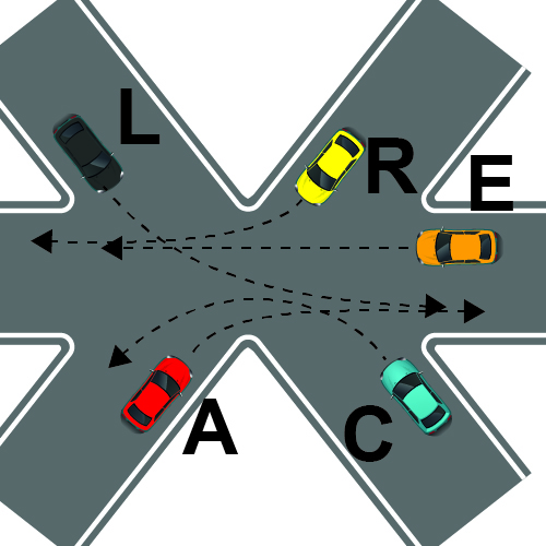 Në kryqëzimin e paraqitur në figurë, mjeti C kalon i pari.