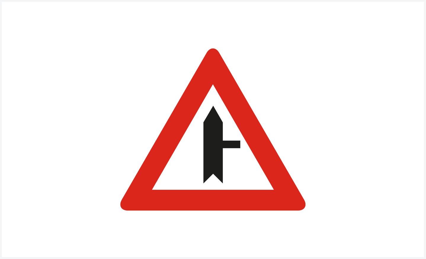 Sinjali në figurë paralajmëron kryqëzim të një rrugë kryesore me një rrugë dytësore, nga e djathta.