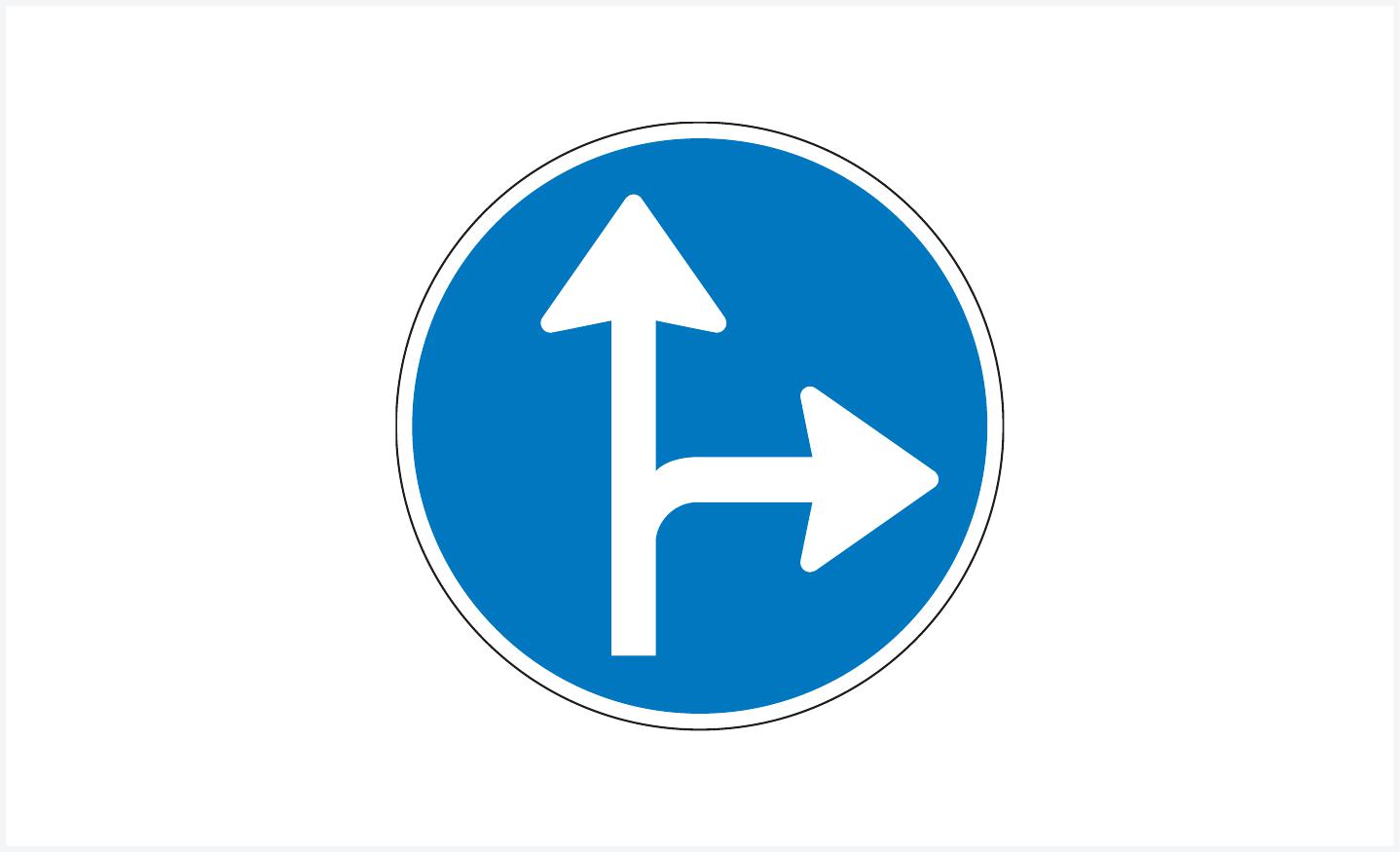 Sinjali i paraqitur në figurë në kryqëzim të detyron të vazhdosh lëvizjen drejt ose të kthehesh djathtas